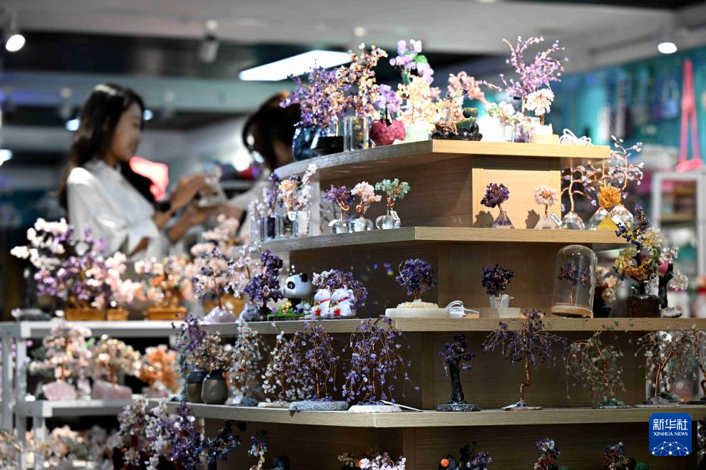 12月22日,顾客在河北省石家庄市一家珠宝产品创意企业展厅挑选创意产品。