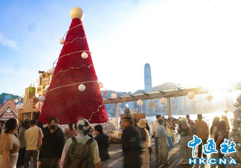 昨日平安夜香港各区人声鼎沸,处处弥漫浓烈的圣诞气氛。中环、尖沙咀及西九龙等地已换上圣诞新装,璀璨的圣诞灯饰及主题装置吸引大量市民及旅客到临打卡,不少人扶老携幼外出欢度节日,也有内地旅客专程来港体验富特色的圣诞氛围。