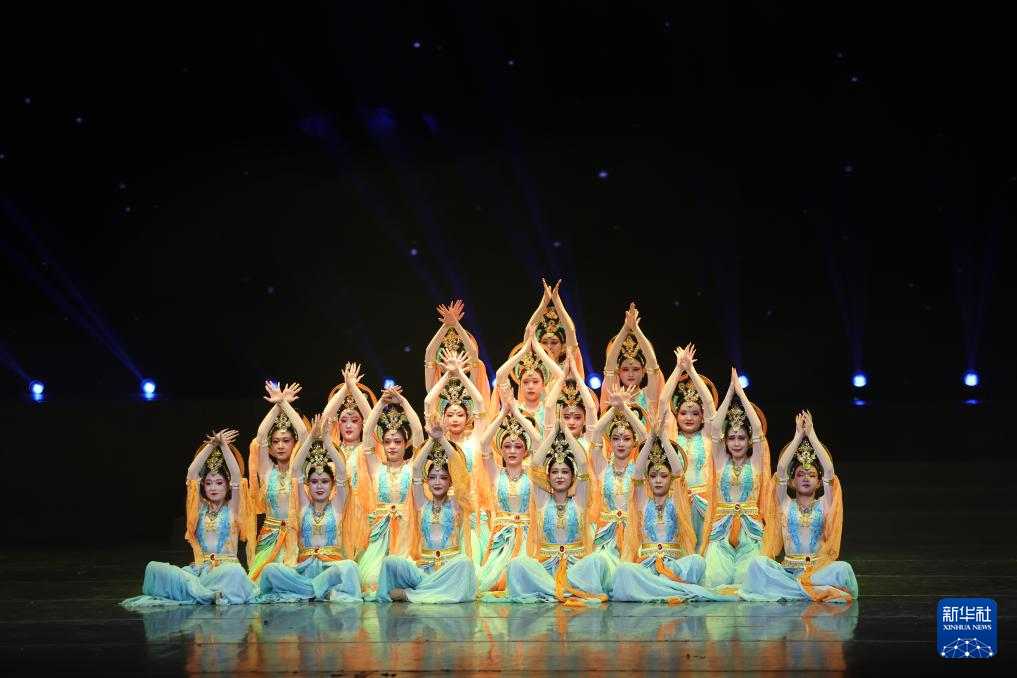 甘肃省酒泉市文化馆的演员在甘肃省群众文艺展演展播活动首场演出中表演敦煌舞(1月7日摄)。