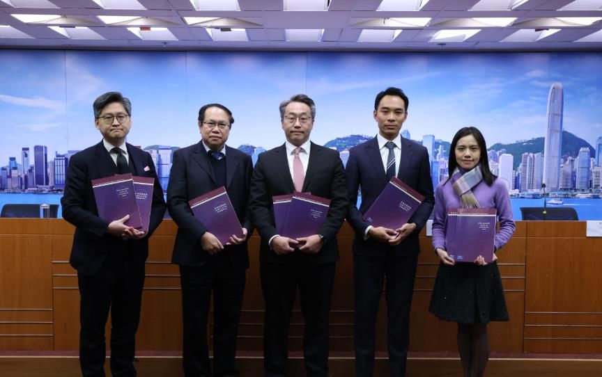 法律改革委员会(法改会)记者会(左起:黄惠冲,邹锦沛,陈政龙,邓子扬,卓芷颖)(香港文汇报记者 万霜灵 摄)