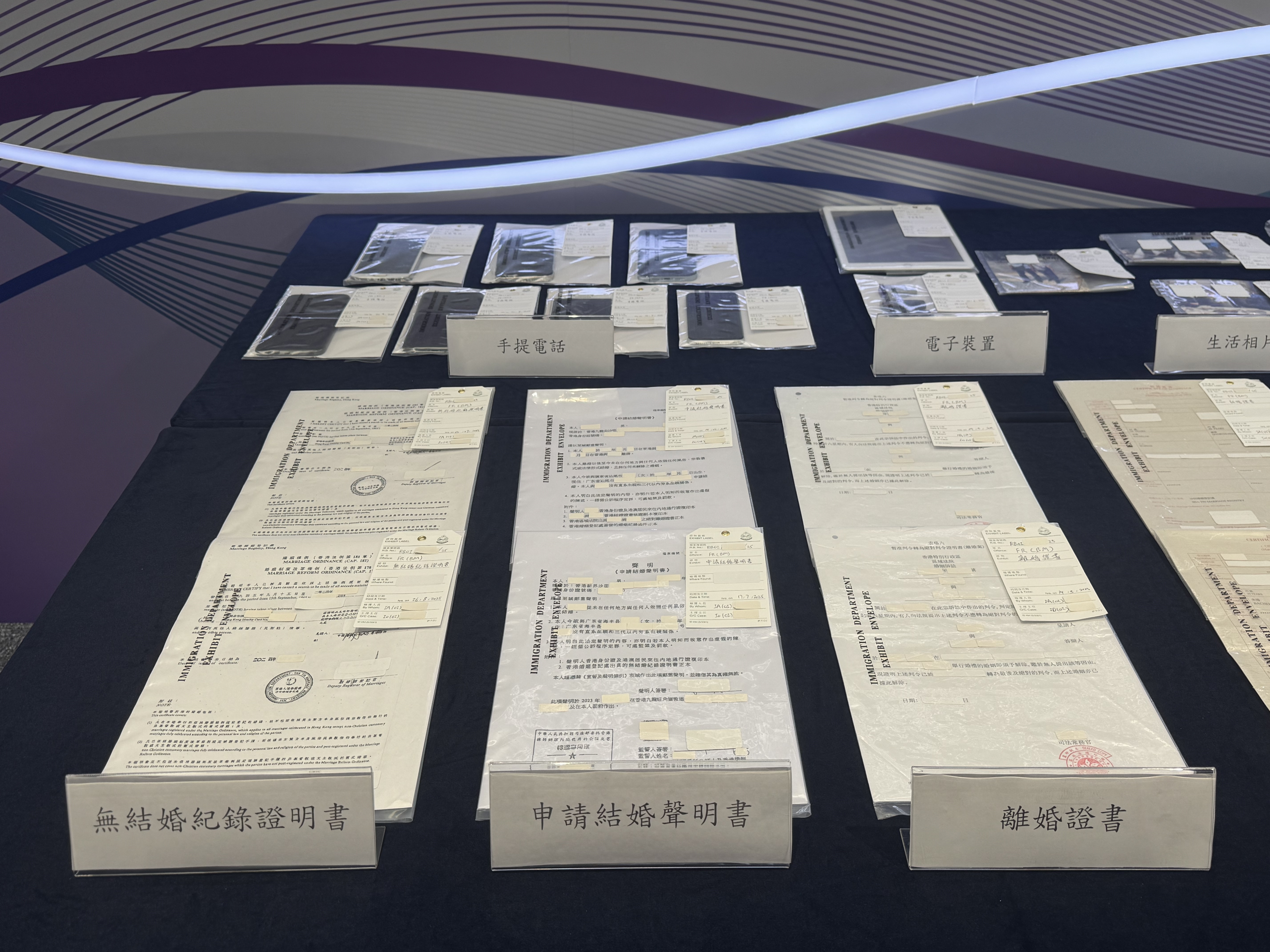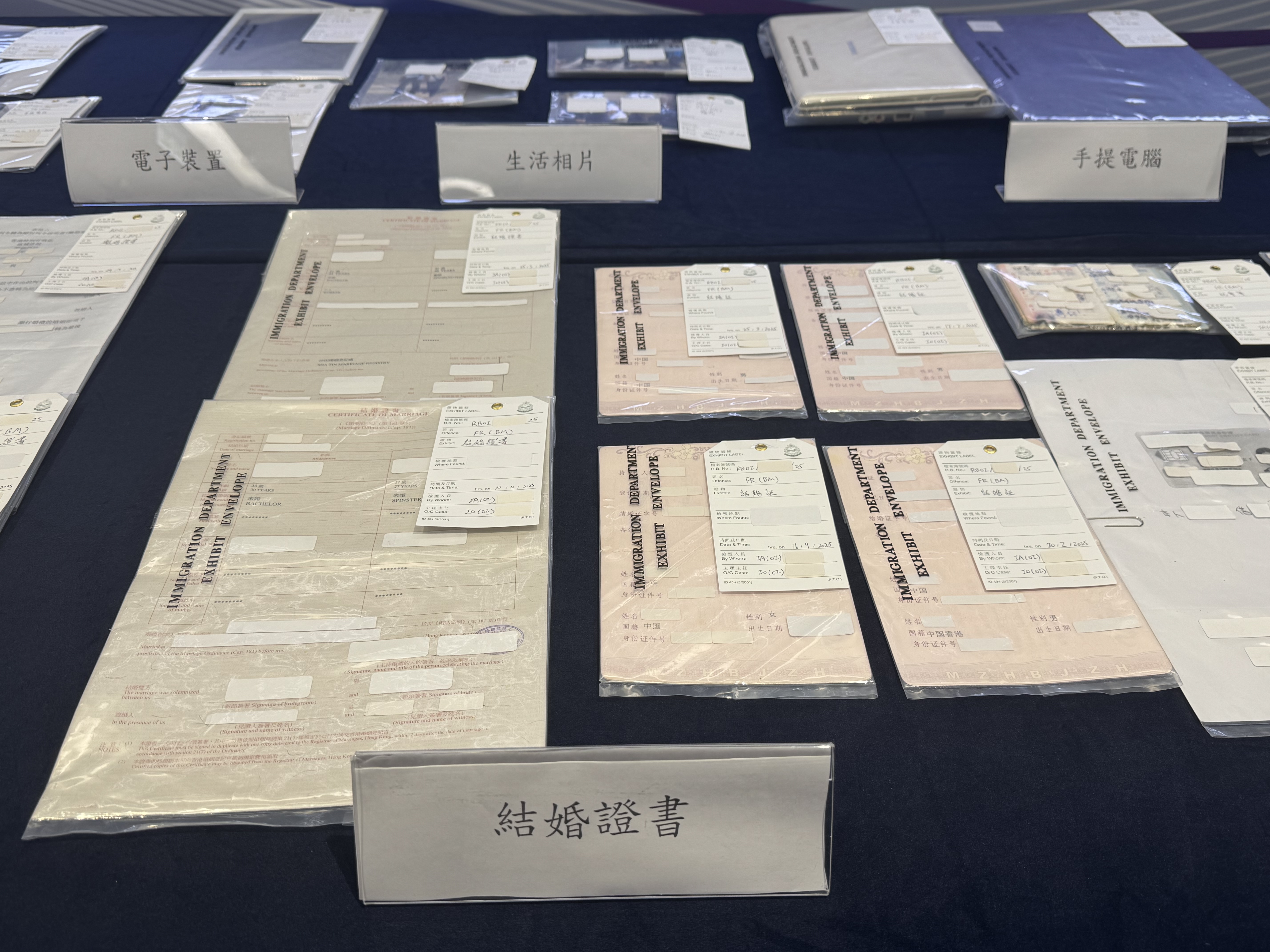 入境处陈列假结婚案的犯罪证据。