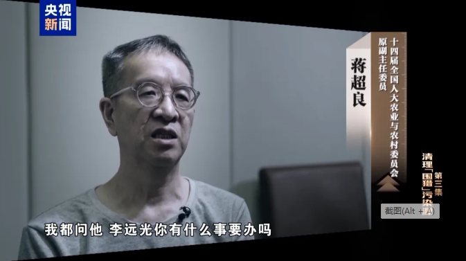 十四届全国人大农业与农村委员会原副主任委员蒋超良在忏悔。图/电视专题片《一步不停歇 半步不退让》