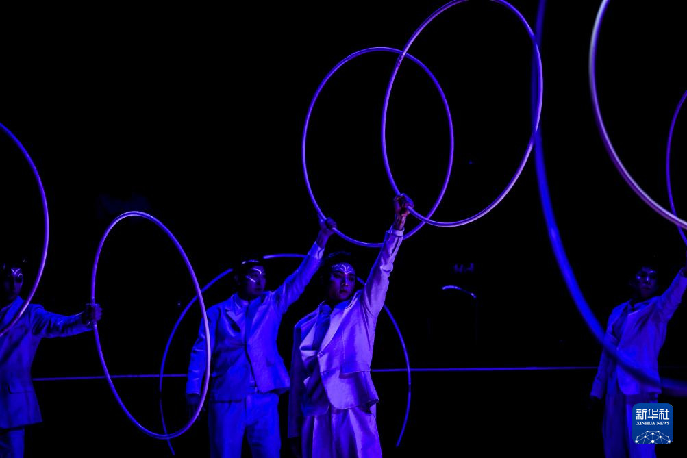 1月12日,在匈牙利首都布达佩斯,中国杂技团演员在表演《时光》。