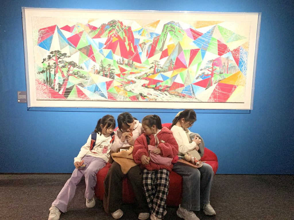 广州巨有艺思美术的学生在《千里江山图》下。