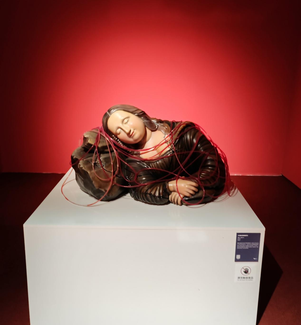 《沉睡的蒙娜丽莎》打破了历史经典形态,重新以雕塑+机械装置反思历史,给出了新的命题:历史沉睡而人类文明的血液奔涌,当代艺术何为?