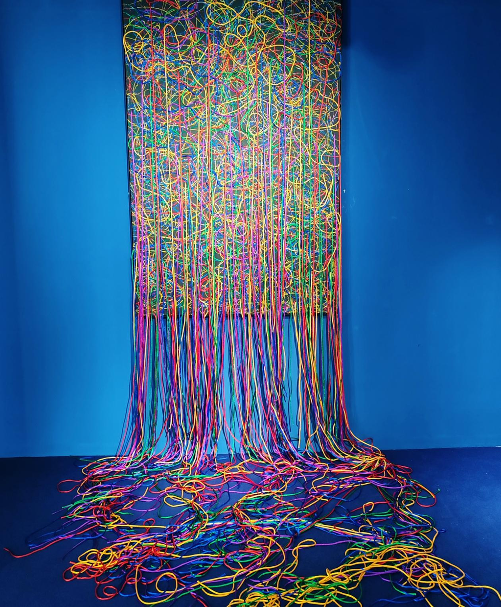 《被困扰的哲学》以架上绘画+纤维艺术的结合,是平面与立体综合材料的奇异创造。