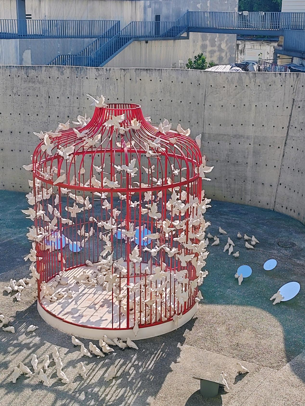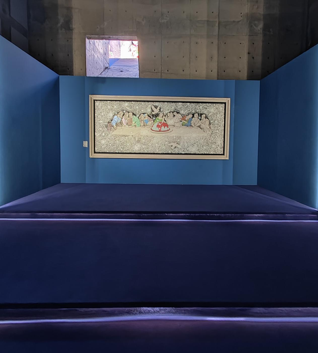 《被困扰的文艺复兴》是周艺文“新文艺复兴”系列的代表作之一。在这件作品中,经典的大卫雕塑与从空中垂下的红色纤维装置并置。这些红色线条如同流动的思绪,从雕塑上空生长、蔓延而出。周艺文借此创作了一种新的视觉语言,用密集的线条构成一种“线的哲学”,打破了传统与当代、静穆与动态的边界。作品旨在表达一种精神的“困扰”:我们怀揣古典人文理想,却身处异质的当代现实,这种断裂与张力正是作品试图揭示的核心,旨在激活经典符号在当下的生命力。