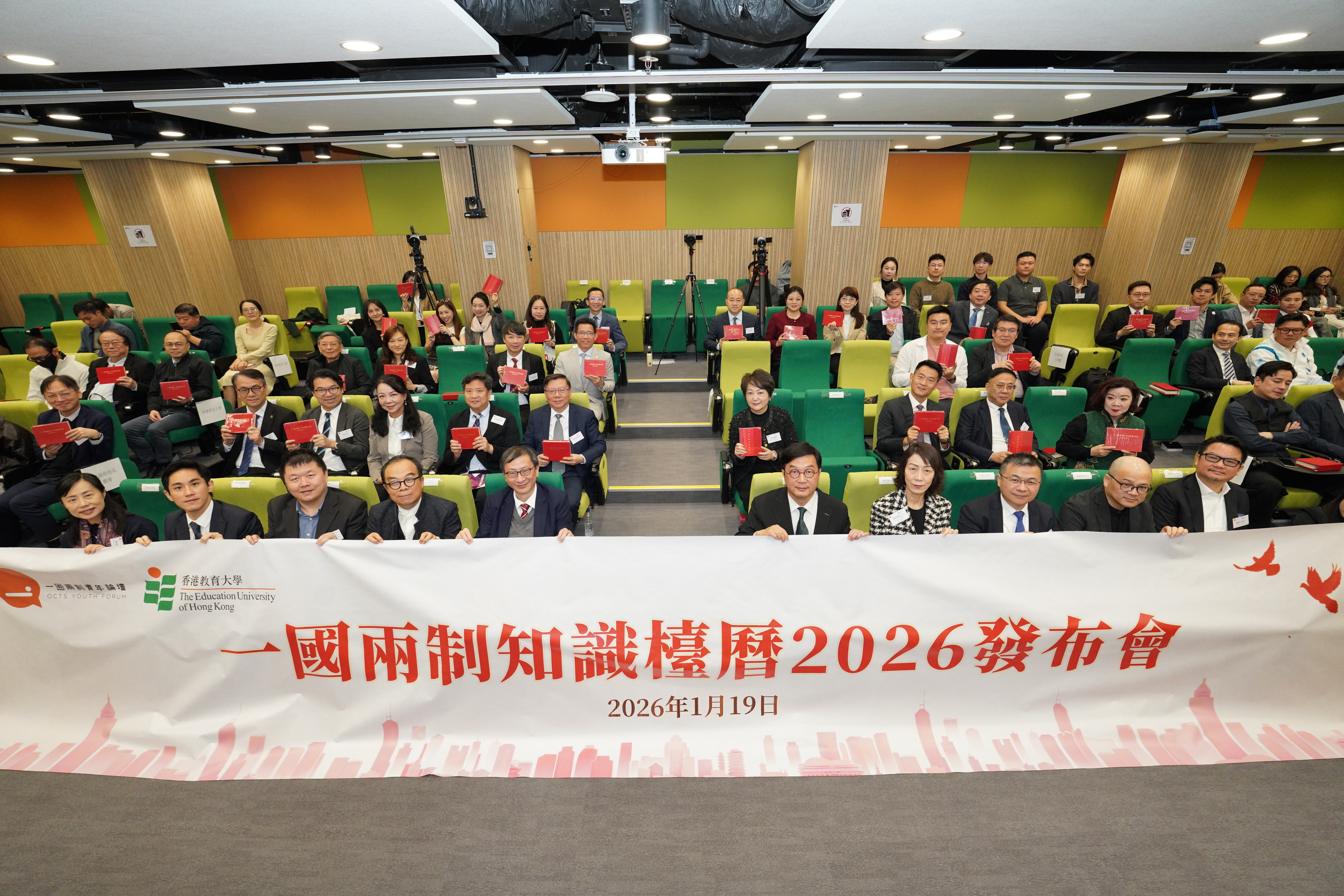 由香港教育大学(教大)与「一国两制青年论坛」共同主办的「《「一国两制」知识台历》2026发布会」1月19日于教大北角教学中心隆重举行。活动邀请来自中国内地与中国香港的专家学者出席,并向学界、工商界及社团代表赠阅新版台历,充分展现社会各界对「一国两制」实践及未来发展的高度重视。