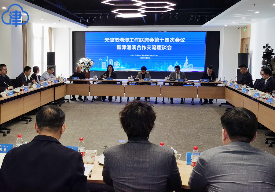 1月20日,天津市港澳工作联席会第十四次会议暨津港澳合作交流座谈会举行。可见郑震生坐在右侧首席。