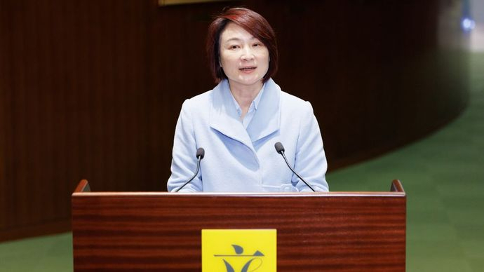 2025年12月23日,运输及物流局局长陈美宝在大屿山充电站暨“粤车南下”资讯中心的启用仪式上,欢迎首批经“粤车南下”入境市区来港并到访大屿山充电站的旅客
