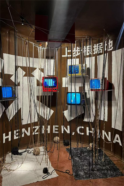 卢文“身体的语言:纤维与声音当代艺术现场”:纤维、旧电视机。