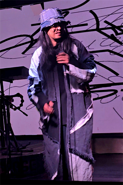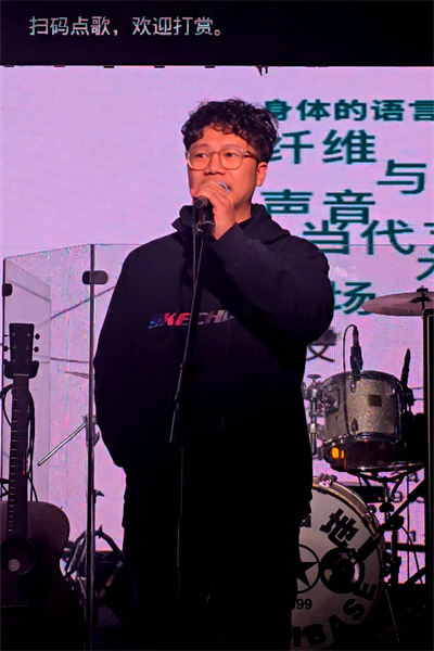 联合策展人、音乐人冬群在现场表演。