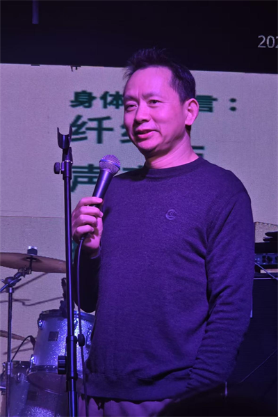 当代冷抽像艺术家唐明伟在现场讲话。