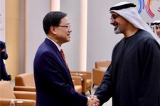 香港新闻社10月31日电 行政长官李家超今日下午在APEC会议期间,与阿联酋阿布扎比王储Sheikh Khaled bin Mohamed bin Zayed Al Nahyan在会场会…